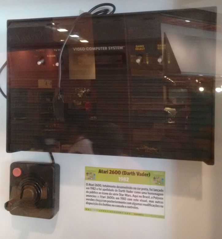 Esse aqui do lado esquerdo (ou abaixo/acima se você está lendo pelo celular), não é um desses genéricos, eu acho. Segundo a tag informativa, ele é apenas uma homenagem ao icônico personagem da saga Star Wars. Uma versão do Atari 2600 todo preto com o nome Atari 2600 Darth Vader. Na prática, não tem diferença nenhuma do original.