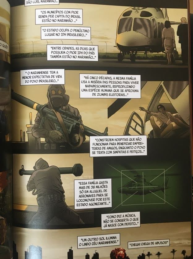 Porém, tanto na vida real, como na HQ, vimos que esse movimento popular acabou desencadeando uma nova onda reacionária no país que parecia também combater a corrupção, mas que na verdade só estava, no máximo, a redirecionando. Mudando as caras e os bolsos oficialmente.