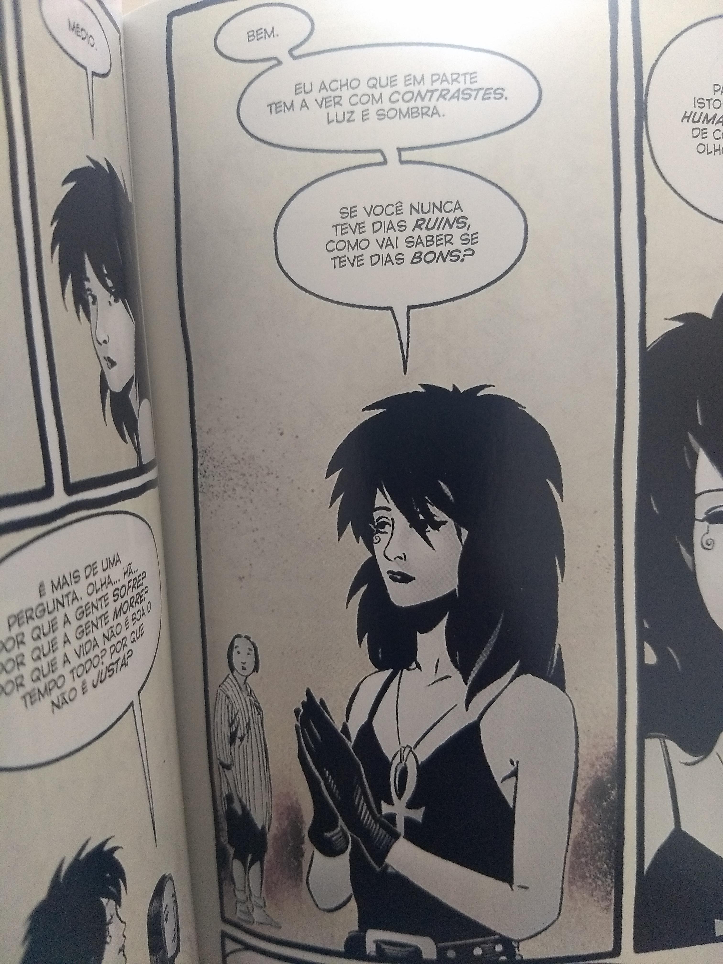 No fim, valeu muito a leitura. Eu gostei muito mais do que o volume de Sandman que li, e me conquistou de tal forma que agora quero ler (e quem sabe colecionar) tudo que envolver esse universo. Talvez isso soe irônico, e certamente essa é a intenção do autor, mas é inevitável não se apaixonar pela Morte. Ela é cativante, carismática, é uma ótima amiga e tem muito a nos ensinar.