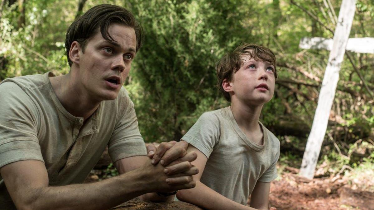 Nessa primeira parte temos foco maior em Willard (Skarsgård) e sua relação com sua esposa e filho (aqui ainda interpretado pelo pequeno Michael Banks Repeta). É importante vermos como e porquê o personagem perdeu sua fé e depois a recuperou. Outra questão sobre a fé e como ela é apresentada e o papel que representa na vida dessas pessoas no final dos anos 50 e início dos 60, especialmente diante de tudo que o mundo passava nessa época.