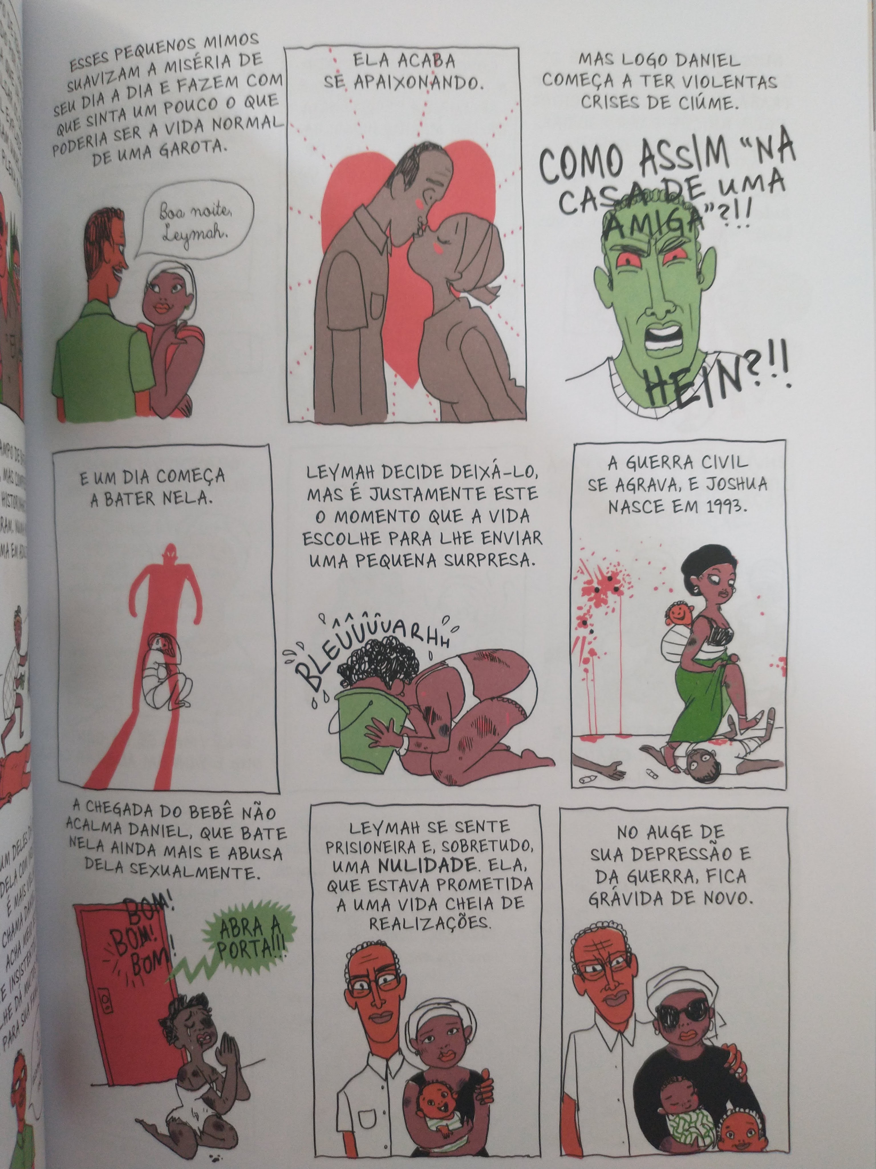 Acho que a história mais forte pra mim foi a de Leymah Gbowee. Ela nasceu em 1972 na Libéria e atravessou diversos problemas familiares e sociais durante sua infância e adolescência, tendo até sido agredida pelo primeiro namorado. Tudo ficou pior quando em 1989 um grupo rebelde iniciou uma guerra civil.