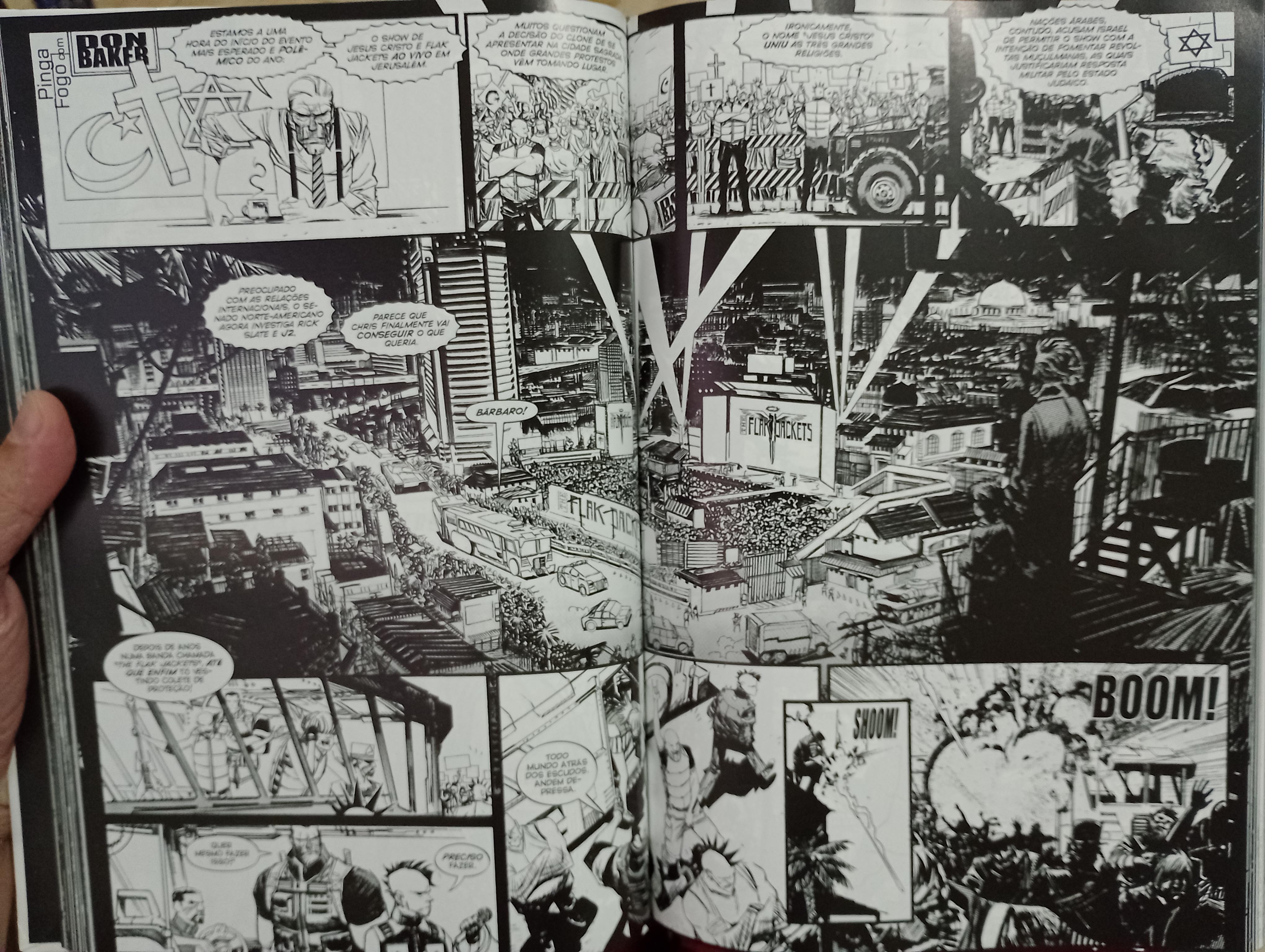 O que importa é que Punk Rock Jesus é um quadrinho excepcional. E se essa foi a primeira vez que Sean Murphy escreveu (ele é muito famoso por ser um excelente desenhista, já até falei de uma obra que ele desenhou excepecionalmente aqui) e ele já chegou chegando! É claro que mesmo a história sendo ótima, a arte ainda sobra. O nível de detalhe que esse cara consegue entregar é impressionante.